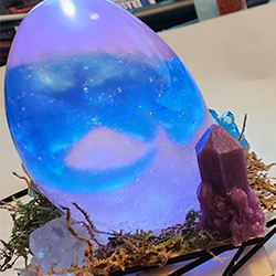 Made of Epoxy Resin (transparent egg or solid), filament (solid only), UV resin (solid only).