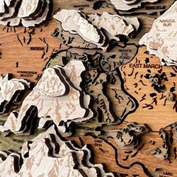 All maps are cut on either our C02 or Fiber lasers. They are designed by hand, cut out, and put together. You have a choice to make a 2d map or 3d relief map.